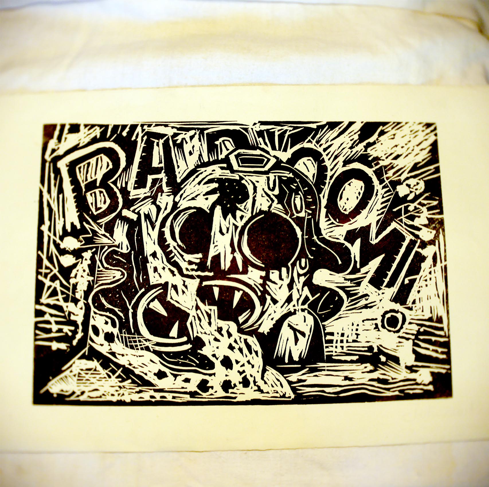 Affiche « BABOOM » – 50,4 x 32,9 cm – Linogravure – Paquito Bolino