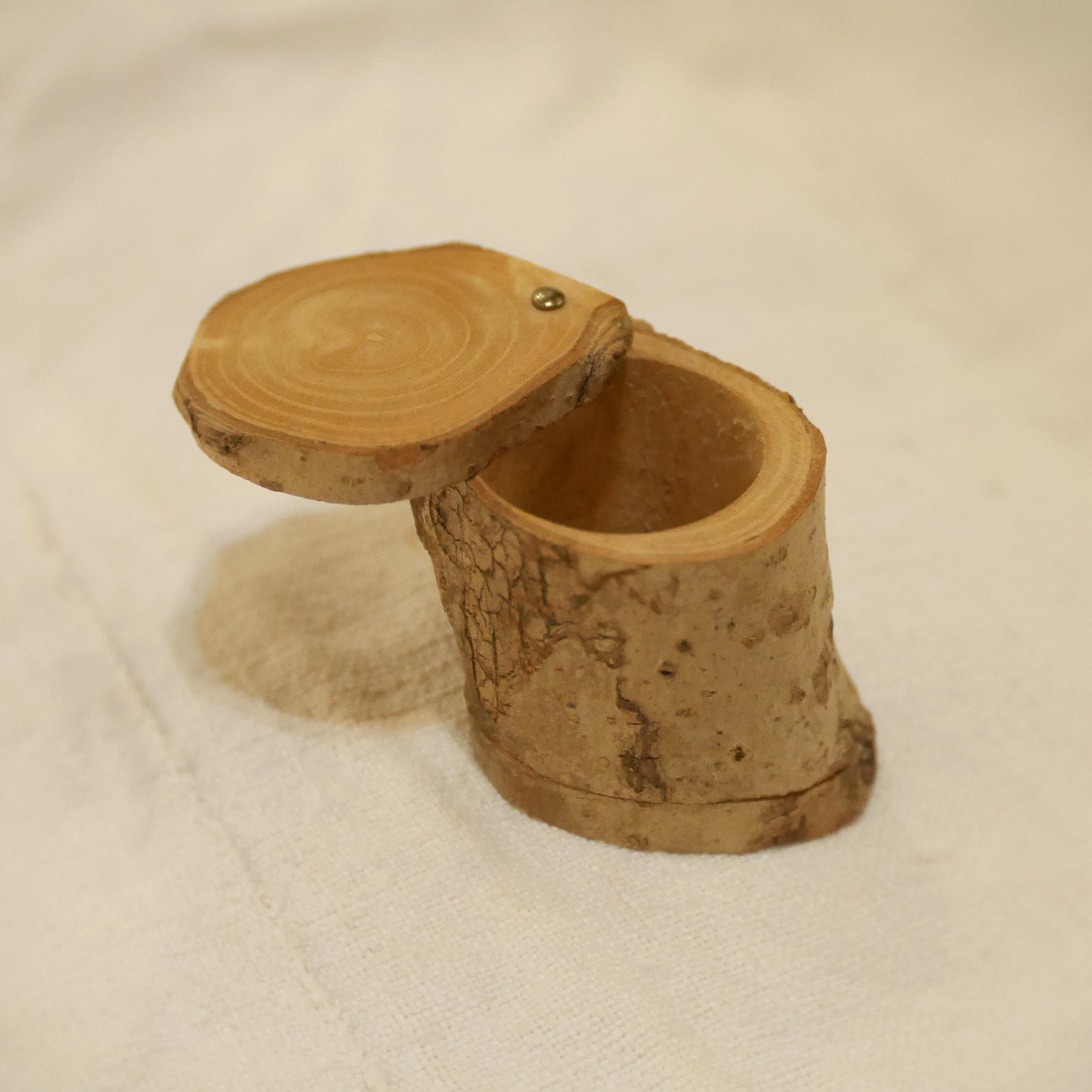 Petite boite en bois de robinier, avec couvercle pivotant, cavité intérieure cylindrique de diamètre 2,9cm.