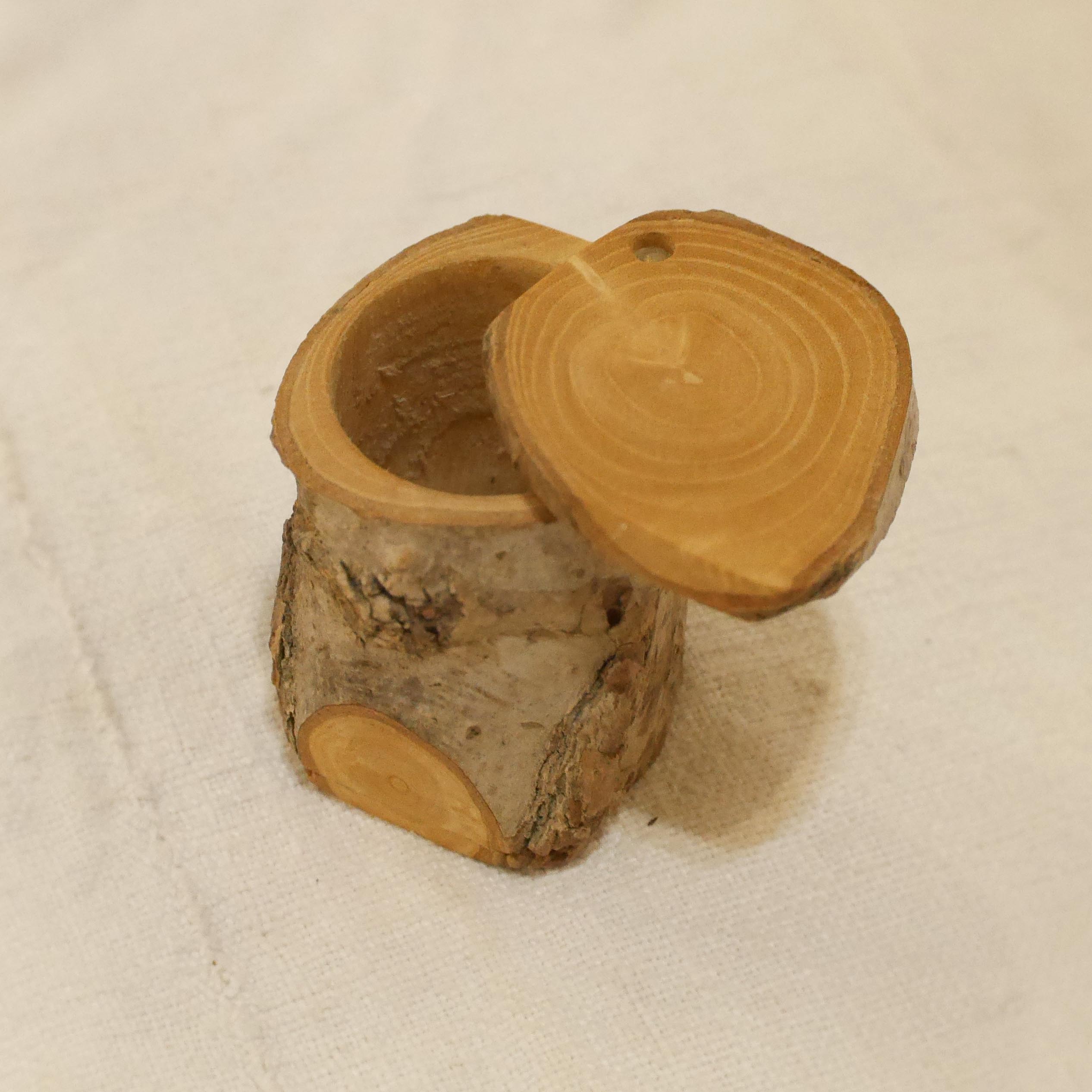 Petite boite en bois de robinier, avec couvercle pivotant, cavité intérieure cylindrique de diamètre 2,9cm.