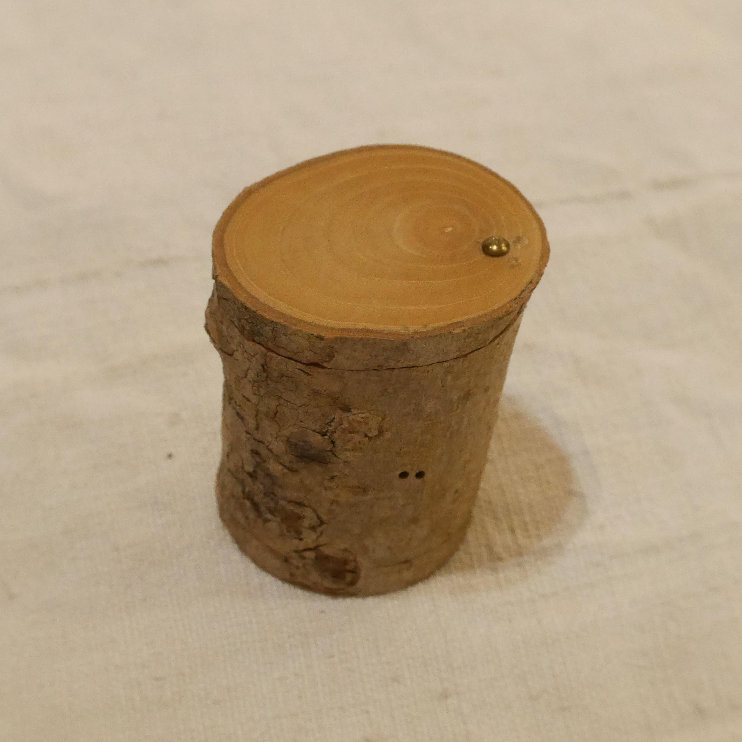 Petite boite en bois de robinier, avec couvercle pivotant, cavité intérieure cylindrique de diamètre 2,9cm.