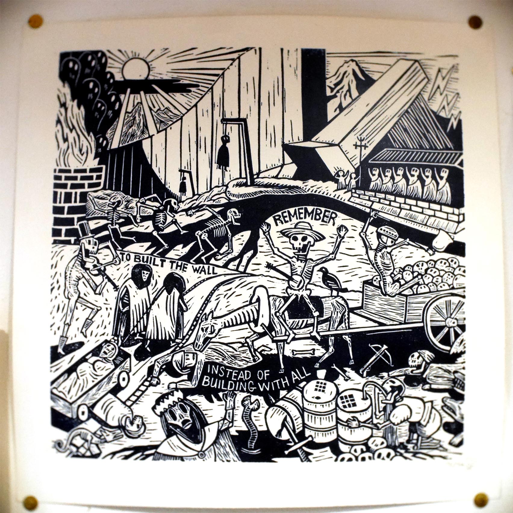 Linogravure pressée au Garage L sur papier recyclé – 30 x 30 cm – Xénoïde – numéroté et signé