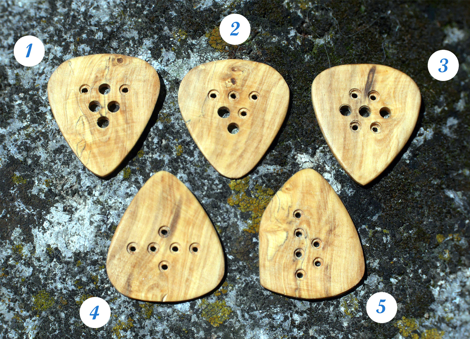 Médiators en buis fait main à L’Atelier L’Art Libre à Forcalquier, traités à l’huile de lin.